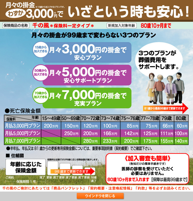 もしもの時の費用準備に 葬儀保険「千の風」ご案内